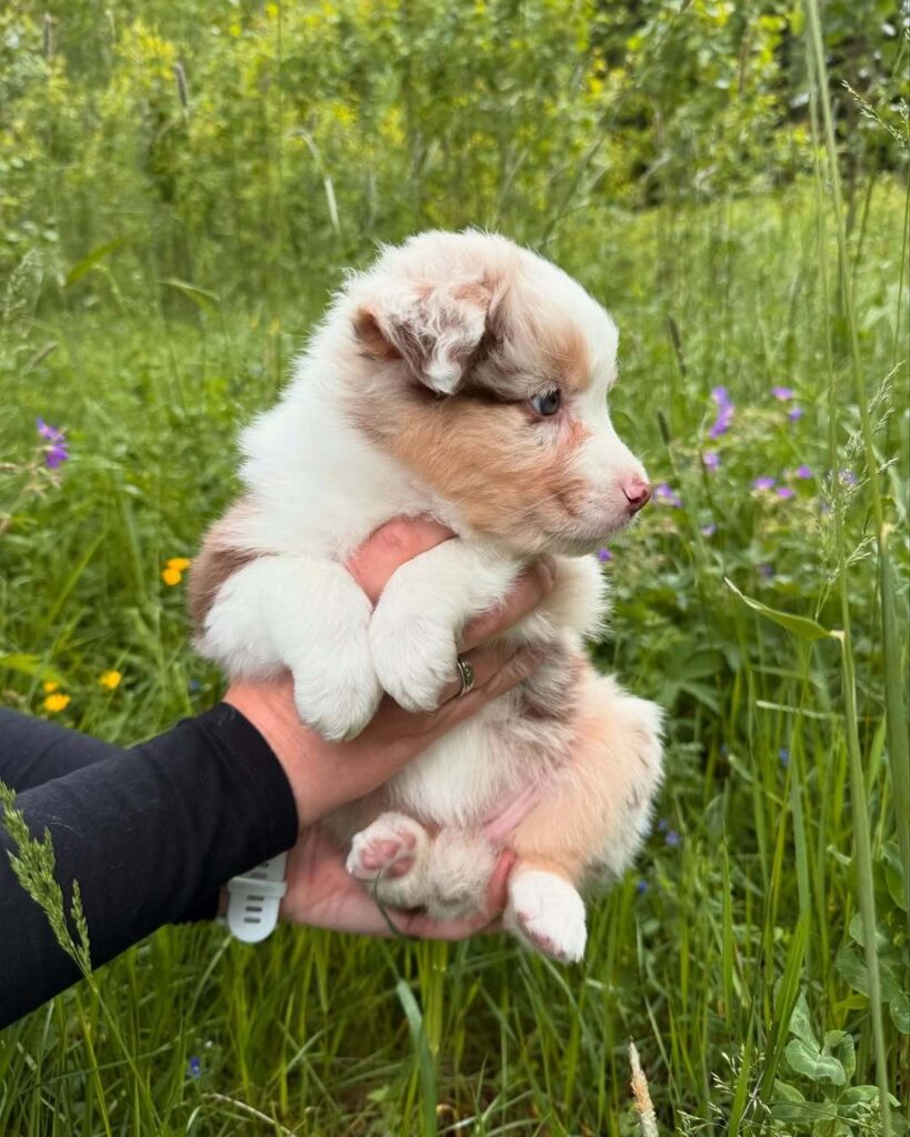 Pastor Australiano tricolor vermelho com olhos azuis, criado em excelentes condições, em ambiente familiar.