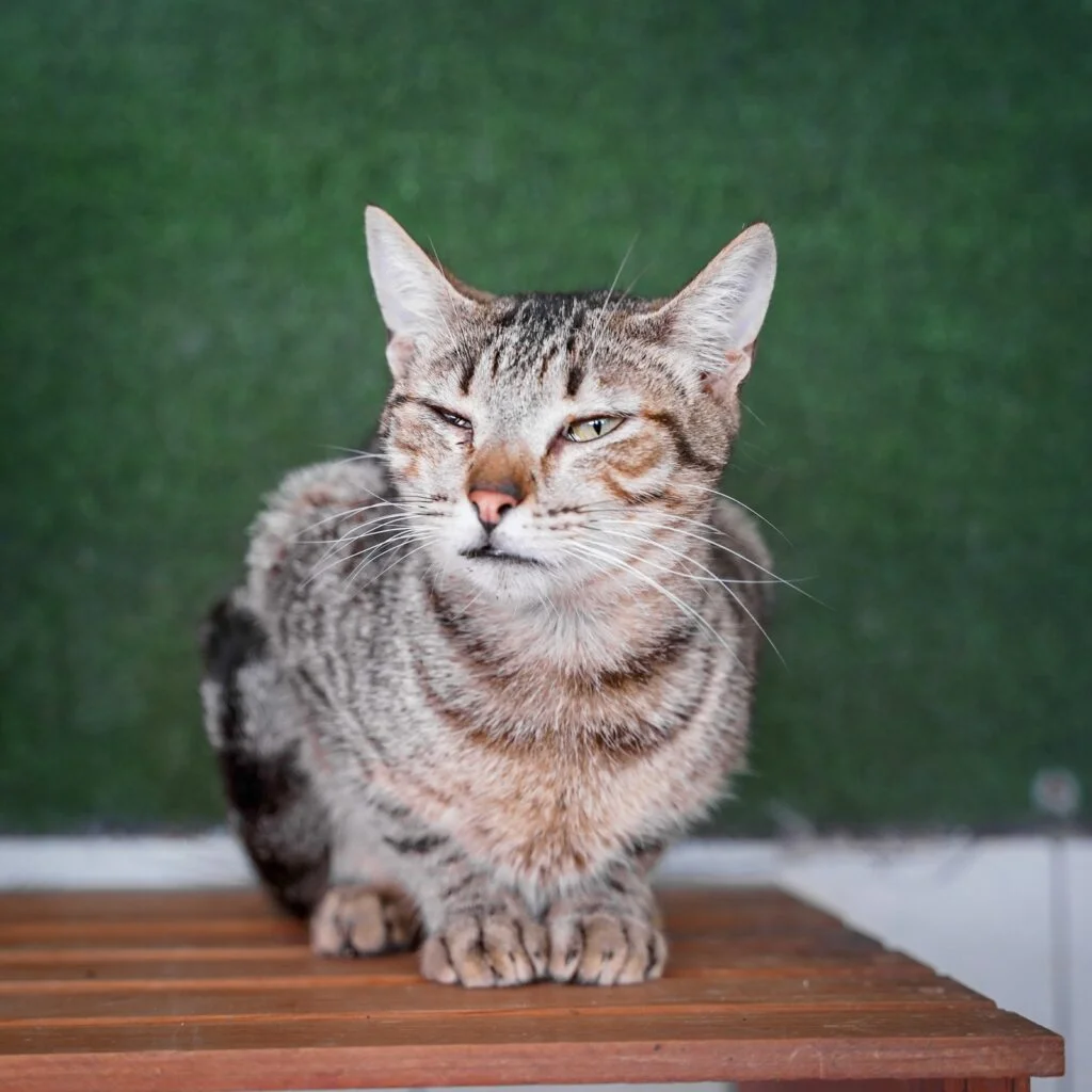 O Riscas é um gato com 3 anos, testado para FIV e FELV, vacinado e desparasitado.